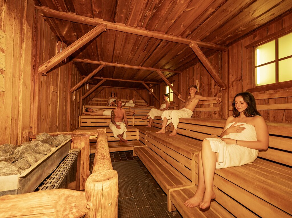 Ätherische Öle, Peelings und kleine Überraschungen sorgen für ein erholsames Sauna-Erlebnis. Bademäntel und Handtücher können Sie an der Rezeption der Badebucht käuflich erwerben oder ausleihen.